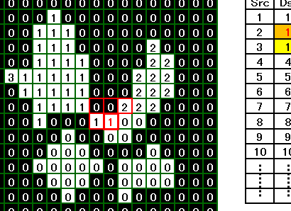 4近傍ラベリング 上下左右の4つの近傍ピクセルを探索