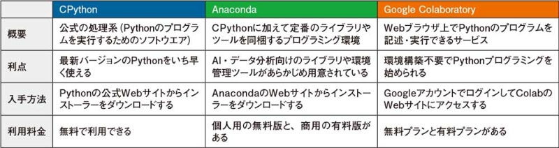 - conda: データサイエンスや機械学習向けのパッケージマネージャー。