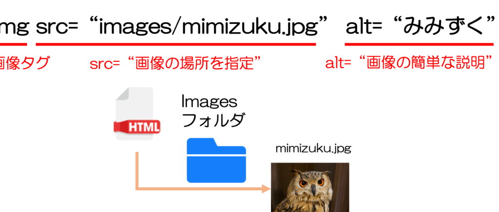 imgタグでは、画像を表示するために必要な情報を指定することができます。