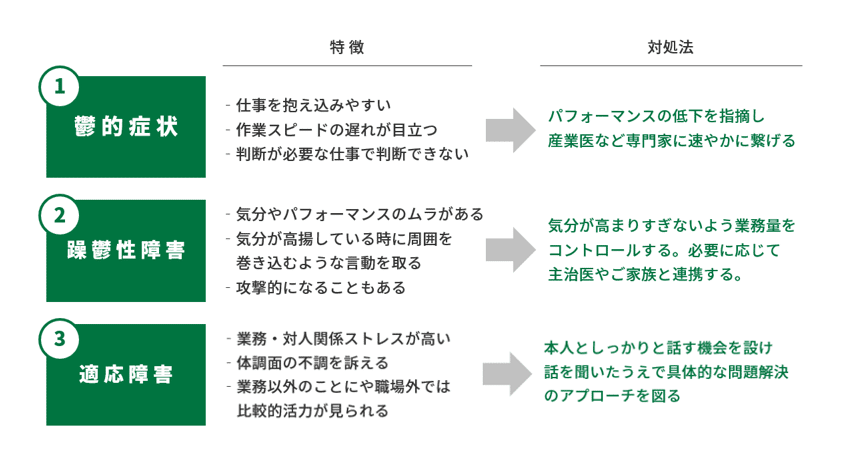 部下のメンタル不調を改善するために何をすればよいですか?