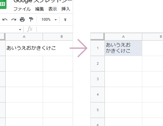 スプレッドシートの改行を含むデータを一行ずつに展開する方法